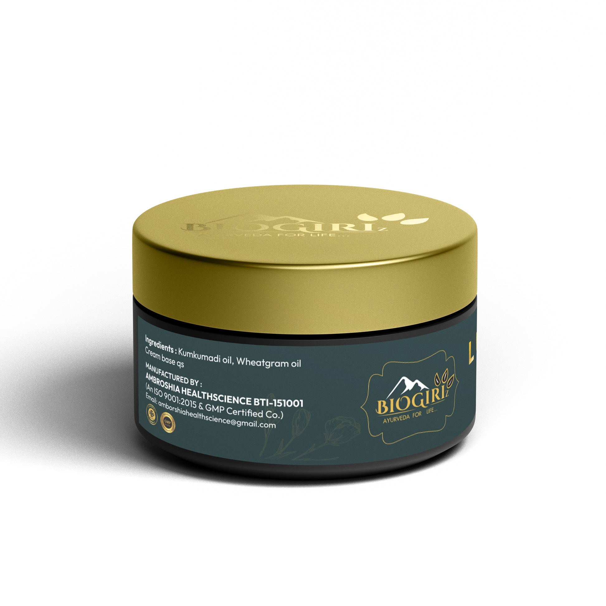 Biogiri Lush Looks Cream is an ayurvedic cream that nourishes the skin's health with high-quality natural ingredients. It contains Kumkumadi oil and Wheatgerm oil, which have properties that keep the skin hydrated and maintain its proper texture. Its main function is to provide an even-toned, balanced appearance. This cream does not feel heavy on the face. Instead, it is light and easily gets absorbed into the skin.